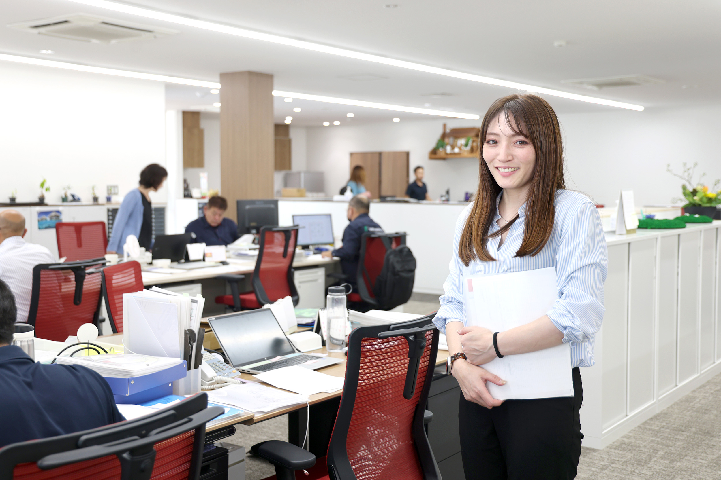 会社見学をしたとき、オフィスがとても綺麗で「ここで働きたい」と強く感じたのが、入社を決めた一番の理由です。前職はまったく違う業界でしたが、先輩に同行しながら業務を学べたので不安なくスタートできました。会社全体に分からないことをすぐに聞ける雰囲気があり、皆さん丁寧に教えていただけるので、すぐに職場に馴染むことができました。